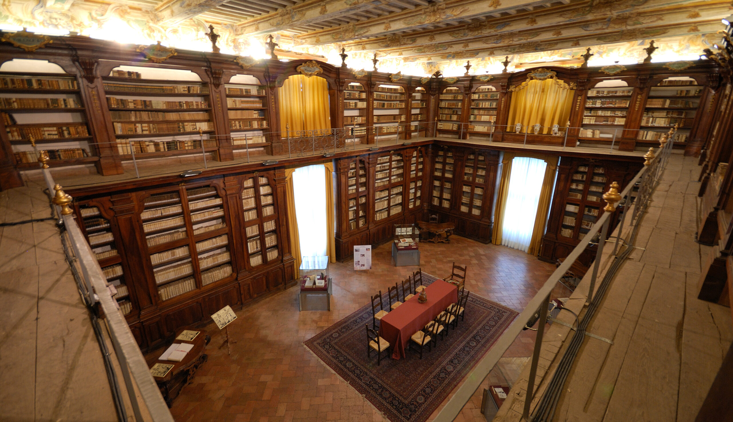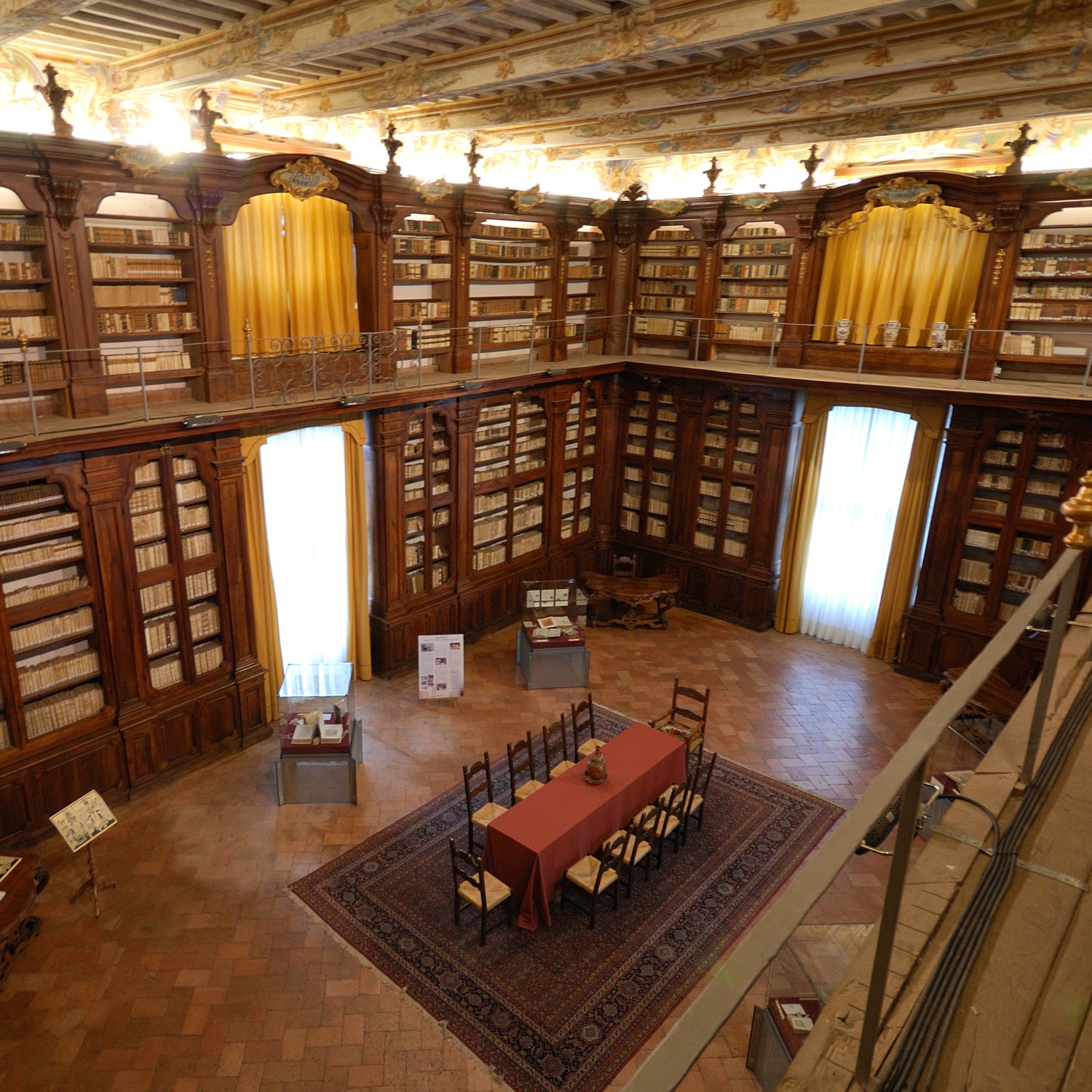 Storia della Biblioteca di Monteripido: dal progetto di Pietro Carattoli ai preziosi manoscritti e le splendide decorazioni di Paolo Brizi.
